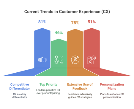 - 46% of business leaders cited improving customer experience as their top priority, ahead of product and pricing